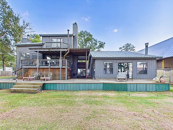 Waterfront lake house with guest home in the Black Forest community on Lake Sam Rayburn. The main home has 3 bedrooms, 2 baths, and a downstairs bonus room that works well as an extra room, or bait/tackle storage. The living room has large windows with lake views, a fireplace, and opens to a spacious kitchen with an island, dining area, walk-in pantry, and laundry room. The primary bedroom includes its own fireplace, a private balcony with an amazing view, and a bathroom with a jetted tub, walk-in shower, closets, and stained-glass details throughout. Outside, enjoy the large multi-level back deck overlooking one of the prettiest points in Black Forest. The guest house is attached to a two-car garage with a metal carport and includes one bedroom, a loft, full kitchen, and full bath. The property is on community water and an aerobic septic system, has a fenced backyard, and allows short-term rentals. Well-kept & move-in ready, this home offers some of the best views on Lake Sam Rayburn.