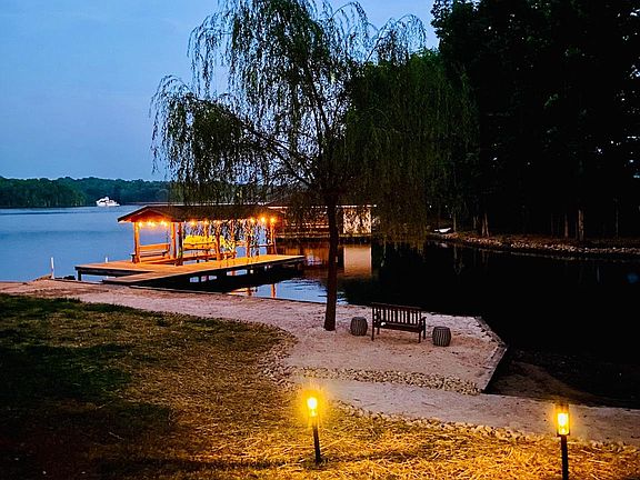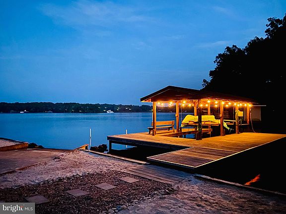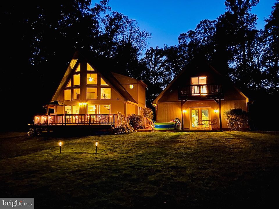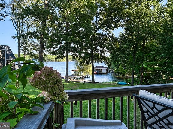 Stunning property & quintessential A-frame style retreat with converted detached garage on the private (warm) side of Lake Anna with 5 sleeping rooms, 3 1/2 baths which includes a private suite including kitchenette above garage with balcony & 1 of the full baths. Beautiful views and landscaping! NO HOA!! Lake Anna was recently named the nation's TOP short term rental vacation "beach" rental location! The upper level of the main house has a spacious full bath, open area to use as you please, primary bedroom and a bunk room that is currently outfitted with a wall mounted TV & 2 bunk beds (3 twins and 1 full sized bed). The bathroom has double vanities, a walk-in shower, and a separate claw foot tub. On the main level, you will find 2 bedrooms, a full bathroom with 2 pedestal sinks and a combination bathtub/shower. An open floor plan perfect for gathering with gourmet kitchen, living/dining space, laundry closet and entry nook including storage cubbies complete the main level. The lower level of the separate garage has been converted into an amazing game room with plenty of space for fun, ceiling fans, recessed lighting, 1/2 bath, refrigerator, sink, minisplit & double french doors. Enjoy the view of the lake from the covered deck just outside the kitchen or from the main deck seating areas. 2 short staircases lead to the lawn, beach, and waterfront. Lounge in the water or on the sandy beach under the weeping willow tree. Perhaps, cozy up with a book or take a snooze, you choose! ***Angler's delight*** Lake Anna is a fantastic destination for reeling in various fish, especially on the private side from October until June ! Boat ramp located to left of dock. The indoor features check every box a lake house owner could desire, but if the sun is shining, you’ll be soaking it up down on the dock with an equally impressive set of possibilities. Shallow waters and large sand beach area with shared cove. Youth paddleboard, water carpet, and other non-motorized water toys available should the new buyer like to purchase. Covered Boat Lift. Early risers will catch the stunning sunrise with a cup o' joe and night owls can roast s’mores by the fire pit and be sure to gaze towards the waterfront during a full moon! Be sure to camp out on the 4th of July to take in the breathtaking fireworks! **** Well/Septic-Stacked Washer/Dryer located in Main house. 3 HVAC units-temp can be adjusted remotely! Shed on property-plenty of parking-circle drive-electronic locks installed on 3 ext doors, perc'd for 3 bedrooms. VIDEO WAS SHOT IN 2021, so please note that there have been some changes since then. Agent/owner has financial interest, home has been a vacation rental with approx income in 2022 of $96k and 5 STAR reviews!! (search Tortuga Bay LKA for additional information) Most of the furnishings inside/outside of the home are negotiable . A doc with items that are not available, Plat, Vacasa rental projection as well as other financial info available upon request. Ring security cameras with exterior audio currently in use. THERE's no place like, HOME! (on the lake!!)
