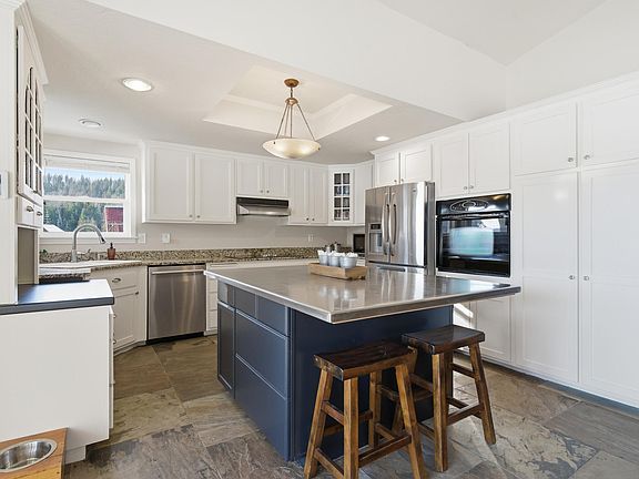 A remarkable North Idaho farm and horse property designed to be a true generational home. Just under 14 acres in sought-after Selle Valley, this property was thoughtfully developed with self-sufficient living in mind while still offering modern comfort and flexibility. Located just off Upper Gold Creek Road, it provides privacy, productivity, and room to grow. The main home features a wrap around porch, chef's kitchen with granite and stainless steel countertops, primary bedroom and guest suite on the main level, with additional bedrooms with a full bath upstairs. A full basement offers expansive storage or the option to create additional living space such as a recreation room or fitness area, playroom. A charming guest house includes kitchen, one bedroom, one bath, loft, making it ideal for family or guests. The property includes well-planned infrastructure to support a self-sustaining lifestyle, including a classic red 34 x 45 two-story gambrel barn with tack room, stalls, hay loft,and an upper-level dance floor. A three-car carport features an enclosed finished work shop currently used as a dehydrator space, ideal for food preservation from the on-site orchard. A 30 x 72 high-production greenhouse provides exceptional capacity for year-round growing. The property is fully on grid, with solar panels on site for those interested in alternative or off-grid living options. Enjoy expansive views, abundant wildlife, and star-filled night skies from the porch. This is a rare opportunity to own a North Idaho property that supports independence, sustainability & privacy.