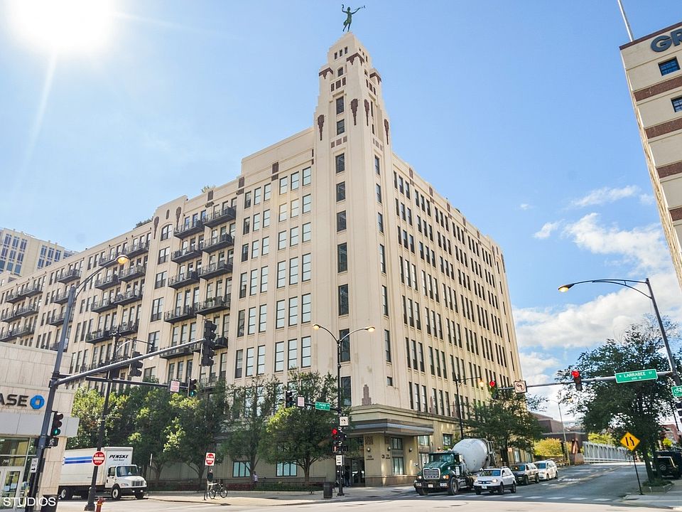 Spacious and sunny one-bedroom loft in premier River North building. This immaculate unit features hardwood floors throughout, soaring nearly 12 foot ceilings, newly re-faced cabinets, in-unit washer/dryer, granite counters, custom light-fixtures, fully-enclosed bedroom with large exterior window, large private balcony, and courtyard views. Building features 24/7 door person, fitness center, common roof deck, & professional management. Prime River North location short distance to parks, East Bank Club, Chicago Brown line CTA, restaurants, shopping, and more!