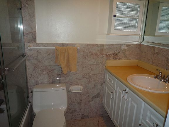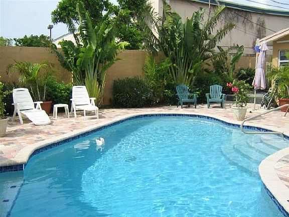 Villa / Condo in Middle River Terrace with incredible improvements including marble floors and bath, private tropical yard in front and back, newer kitchen, stainless steel appliances, granite or designer counters and beautiful community pool with lush, detailed landscaping.