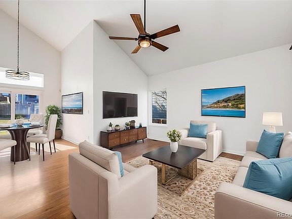 Welcome to your dream home in Highlands Ranch, CO! This immaculate 3-bedroom, 3-bathroom residence spans 1816 square feet and is move-in ready with modern updates throughout. The kitchen boasts granite counters, stainless steel appliances, sleek white cabinets, and chic floating shelves, creating a perfect space for culinary delights. The open floor plan and soaring vaulted ceilings enhance the home's airy feel. Retreat to the primary suite, featuring an attached bath and vaulted ceiling for a touch of luxury. Enjoy the professionally landscaped backyard, complete with a stamped concrete patio and raised garden bed, ideal for outdoor entertaining. New water heater, dishwasher, and electrical panel ensure peace of mind. Washer and dryer are included, and a convenient mud bench is located by the garage entry. The unfinished basement awaits your personal touches and could be used as home office, workout room, play room or additional storage. Enjoy four rec centers, tennis, pickleball, countless parks and miles upon miles of open space trails. Don't miss the opportunity to make this impressive Highlands Ranch home your own!