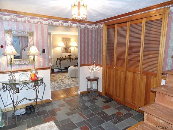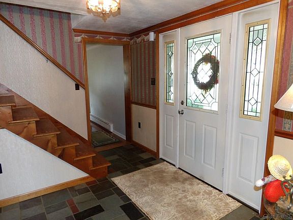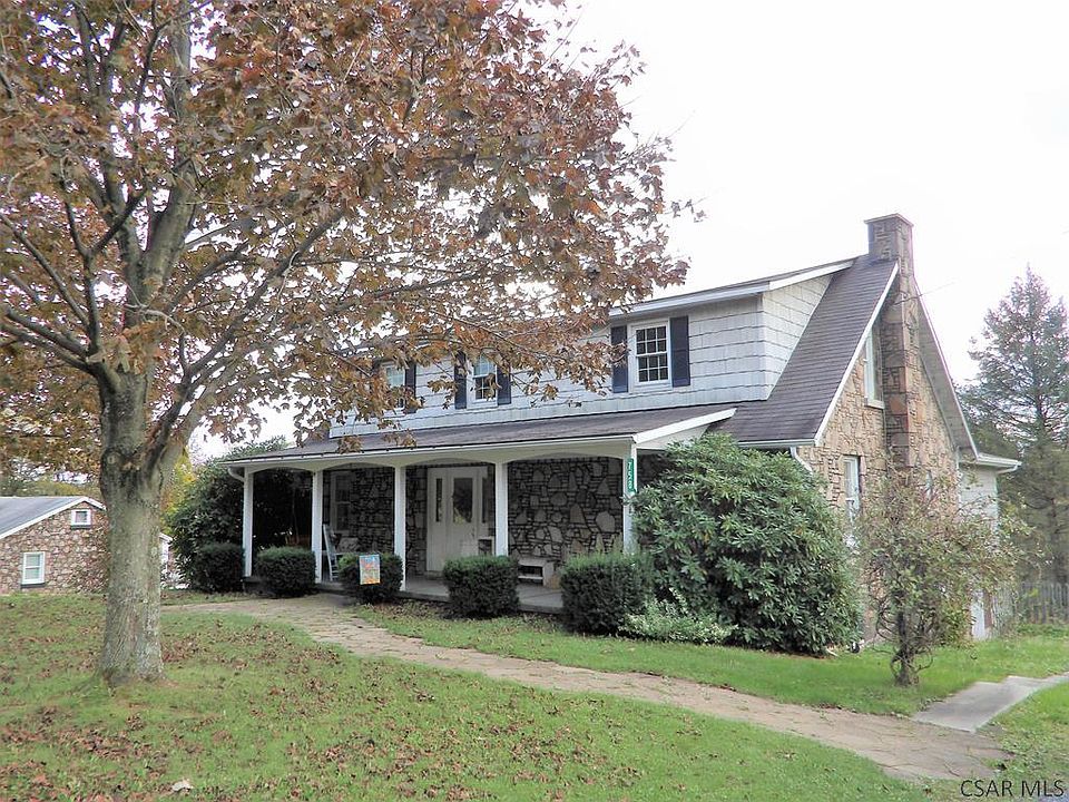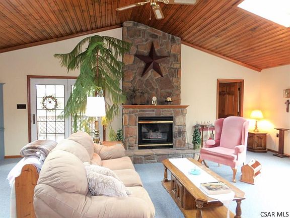 COUNTRY LIVING WITHOUT THE DRIVE - It's hard to find - a spacious 4 bedroom stone & vinyl home in the country yet minutes from town. Beautiful 26 x 17 family room addition with knotty pine tongue & groove cathedral ceiling, stone fireplace and skylights. One of the two sets of French doors lead to a heated sunroom. Large oak eat-in kitchen with center island and breakfast bar. Formal dining and living rooms. Inviting slate foyer with pretty open stairway. Second floor features 4 bedrooms - one of which is currently used as a large sitting/