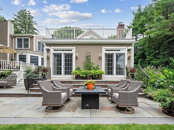 Discover exceptional value in this newly-priced South Street estate, positioned on a lush acre just beyond the town center & train station. This home artfully blends historic character w/ contemporary comforts. Delight guests in the grand billiard room with fieldstone fireplace and coffered ceiling. Unwind in the family room with inviting fireplace and sunlit window seat. Both spaces, along with the formal living and dining rooms, provide a perfect setting for intimate gatherings and grand celebrations. Step outside to beautifully landscaped grounds, patios and decks, offering a peaceful outdoor retreat with nature as your backdrop. The bright kitchen is designed for culinary adventures and family gatherings, complete with island seating and a sunny breakfast nook. When it's time to rest, retreat to the stunning primary suite with private study, gas fireplace, vaulted ceiling, walk in closet & expansive roofdeck. Four more BRs and a finished lower level playroom provide room for all.