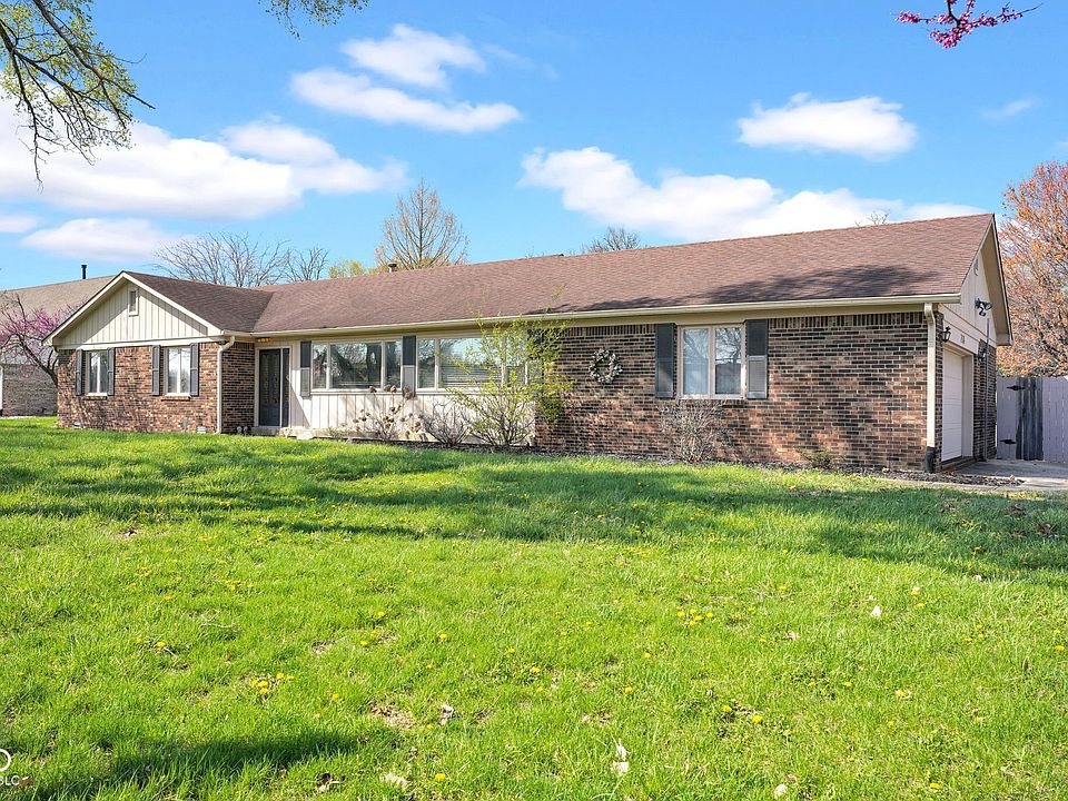 After a short break from the market, this lovely home is back and better than ever! The seller used the time to beautifully update the primary en-suite bathroom, adding stylish finishes and a fresh, modern touch that makes the space feel brand new. Don't miss your chance to see the transformation! This spacious 3 bedroom, 2.5 bath brick ranch with den, and over 2000 square feet is on a generous third of an acre corner lot. The open floor plan boasts a huge family room with gorgeous cathedral ceiling and cozy wood burning fireplace. The formal dining room and living room provide plenty of additional space for gatherings and special occasions. The kitchen is both stylish and functional with granite countertops and stainless steel appliances. The two-car garage includes a convenient office space/workshop, ideal for hobbies. The den is right off of the kitchen with its own half bath which could make working from home very convenient. This well-maintained home features a fully fenced backyard- perfect for relaxing and entertaining. Located in a prime spot close to schools, shopping, and entertainment, and just a short drive to downtown Indianapolis and the airport- this home combines space, comfort, and convenience!