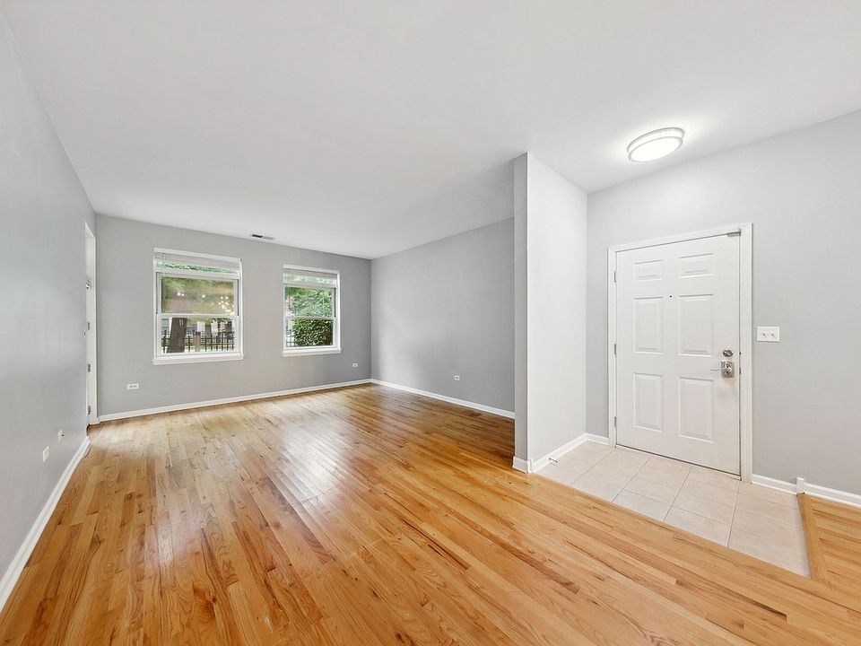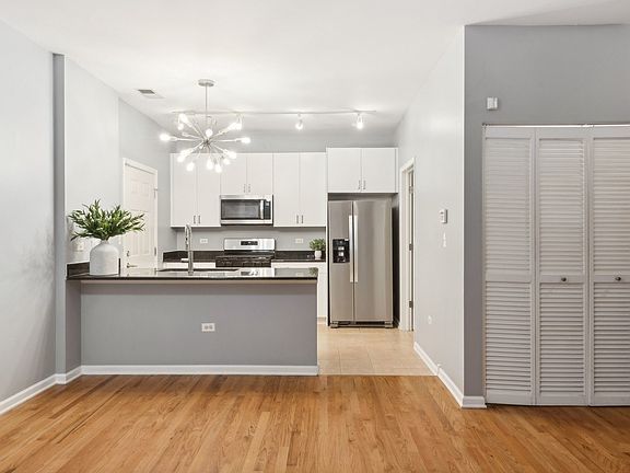 Generously-sized 2 bedroom/2 bath home with spacious, open floor plan. Light-filled living/dining room is open to the kitchen and features hardwood floors and access to the private outdoor patio overlooking the tree-lined street. Recently refurbished with new carpeting, paintwork, and kitchen appliances (oven, microwave, fridge, dryer). Kitchen has plentiful cabinet space, granite countertops & eating island. Master bedroom has an en-suite bath and additional access to the tree-lined private patio. Second, sunny bedroom is large and has access to a second full bathroom. Generous closet space! Side-by-side in-unit washer/dryer. Location is the ultimate in convenience with easy access to public transportation, expressways, shopping, entertainment and restaurants! 1 outdoor parking space is included. Plenty of food options nearby such as Popeye's, Joy Yee, Bar Louie, Jim's Original Cold Stone Creamery. Near the UIC Sports Complex. Lease duration for 1 year, can be extended depending on situation. Renter pays for electricity; owner pays for water