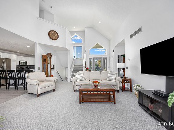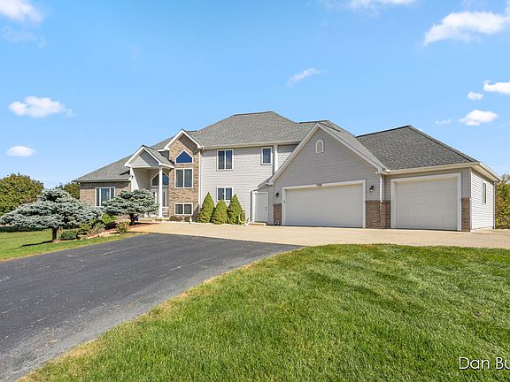 This custom home sits on 2+ acres in a beautiful country setting just minutes away from many amenities. The main floor features an expansive living room designed for entertaining, which flows to the dining area & kitchen. The kitchen was recently updated with quartz countertops & a full tile backsplash. The massive primary bedroom boasts a custom closet & newer tiled shower. Main level also includes large laundry room with sink & extra freezer, and a flex room perfect for either a bedroom or office. The upper level offers two generously sized bedrooms, each with walk-in closets, and a shared jack-and-jill bathroom. The walk-out lower-level features 9' ceilings, fireplace, sizable family room, kitchenette, bedroom, and full bath. Exterior amenities include a 3-stall garage, shed, and newer pole barn. The pole barn features two overhead doors, approx 800 sqft loft, electricity, concrete floors, and a separate drive off 76th St. Seller has delayed review of offers until 8am on 10/15/25.
