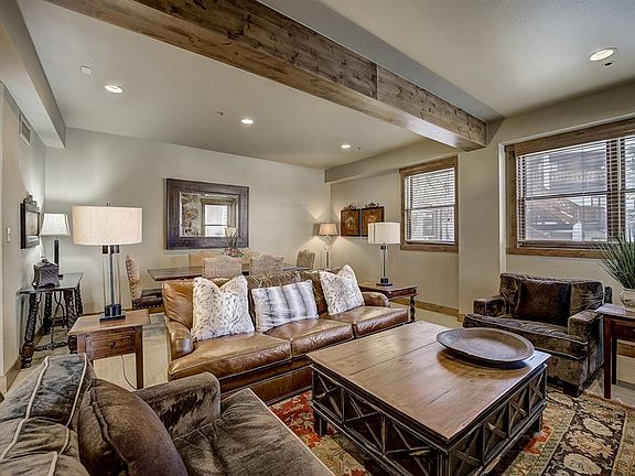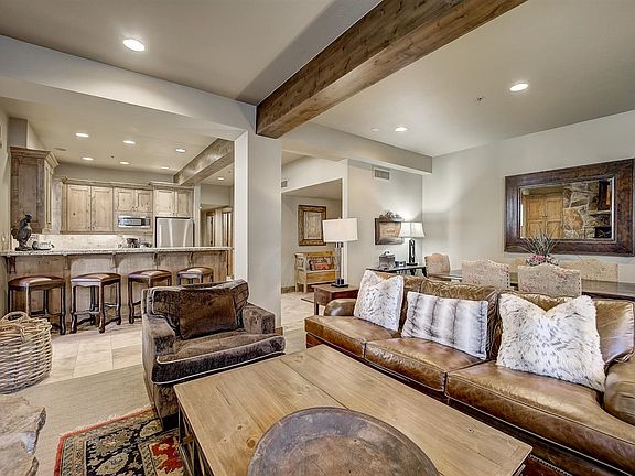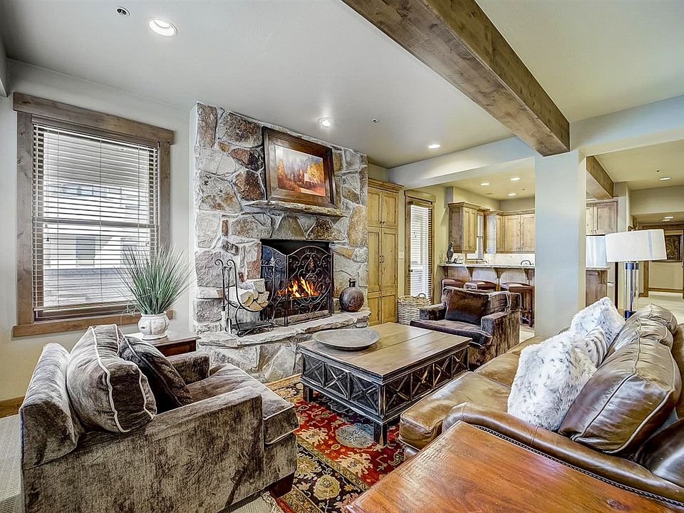 Welcome to Mont Cervin #24, an upscale condo located in Silver Lake Village at Deer Valley. This elegant mountain retreat features tasteful decor with subtle wooden finishes throughout. The oversized stone fireplace serves as the centerpiece of the living room, creating a warm and inviting atmosphere. The fully equipped kitchen makes everyday cooking convenient, while the open layout provides a comfortable flow between living and dining areas.