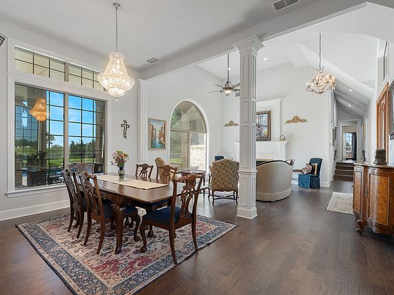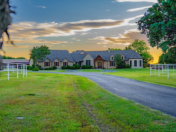 Located in the heart of North Texas' horse country, this 4487 sf residence blends classic design with modern updates. The split-bedroom floor plan offers both privacy and functionality, with the primary suite and private office on one wing and additional bedrooms and living spaces on the other. Recent upgrades include engineered hardwood flooring, exterior privacy screens for energy efficiency, and updated pool and equipment.