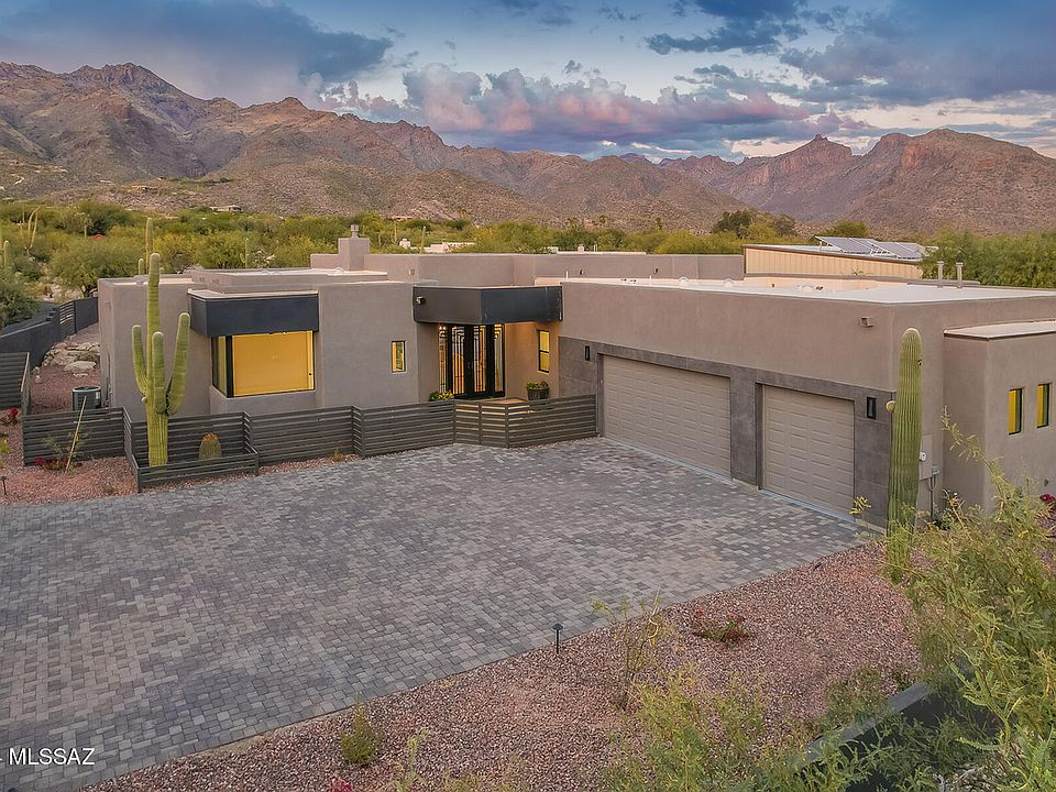 Exquisite NEW southwest contemporary designed by Greg Simmons & crafted by Al LeCocq. The private 1.2 acre lot is within walking distance to Sabino Canyon, schools and offers STUNNING mountain views! Magnificent home for discerning buyers who understand quality in workmanship. Spacious open great room floor plan w/soaring ceilings, floor to ceiling windows, 8' solid doors and gorgeous tile throughout. Gourmet island kitchen with beautiful high end cabinetry by Affinity Kitchens, top of the line SS appliances, built-in refrigerator, Quartz counters and large walk-in pantry. Spacious primary suite and 4 luxurious bathrooms. Enjoy the great outdoors in the north facing rear yard with the expansive covered patios, built-in BBQ and STUNNING views! Must see More Section, 3D Scan and Floor Plan. Please use Agave Title, Kelly Ladrido Escrow Officer. 520-918-1683. Kellyl@agavetitle.com. Title Commitment with legal description and links to CCR's are in attached documents.