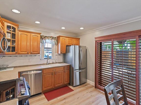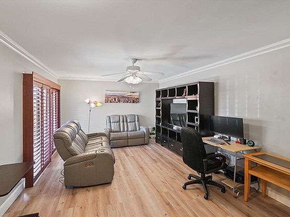 Welcome to this stunning 3-bedroom, 2.5-bathroom townhome located in the desirable community of The Courtyards of Boca Raton. This home offers exceptional convenience -- just a short walk to shopping, dining, and places of worship. This meticulously maintained and freshly painted home is filled with modern upgrades. All popcorn ceilings have been removed, with elegant crown molding enhancing the interior. The home is illuminated with stylish hi-hat lighting, creating a bright and inviting atmosphere. Premium Hunter Douglas plantation shutters adorn every door and window, adding both charm and functionality. The first floor features durable and stylish luxury vinyl flooring, while the staircase and upstairs bedrooms are finished with warm hardwood floors. All bedrooms include impact windows for added security and peace of mind. The kitchen boasts maple cabinets and sleek stainless steel appliances, ceiling fans in the rooms ensure year-round comfort. The bathroom offers a spa-like retreat with a relaxing Jacuzzi tub. Enjoy outdoor living on the spacious private patio, complete with a convenient storage shed. With its ideal location, thoughtful upgrades, and impressive features, this move-in-ready townhome is a must-see! Schedule your showing today.