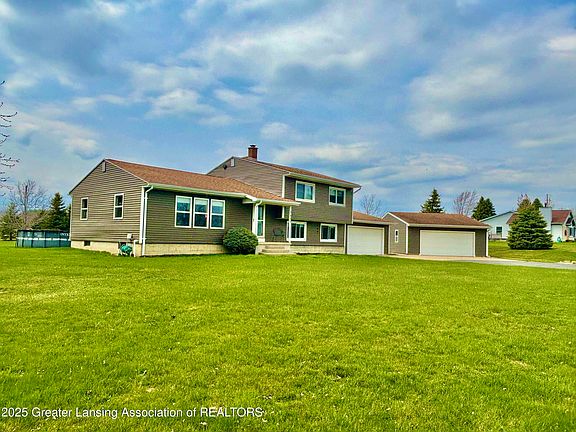Country views & privacy await your tour at this 4 bdrm/1.5 bath quad level- GRAND LEDGE SCHOOLS , Main floor features a larger kitchen, formal dining room & spacious living room with ample natural light throughout. 2nd floor has 3 of the bdrms & an oversized main bath with double vanities. Basement features a walk out to the patio, new Master bdrm ( unfinished) , seperate laundry rm & entry to the attached 2 car garage. The lower basement features utilities, a newer furnace/HVAC, tanning bed, & storage or add'l future living space. Exterior features a rear deck w/ Intex Pool, fire pit, expansive views, mature pines, a 2nd (2+ car) garage, paved driveway, 3.6+/- acres & mature landscaping. Additional features are hardwood flooring, fresh paint and updated windows. This is a must see!