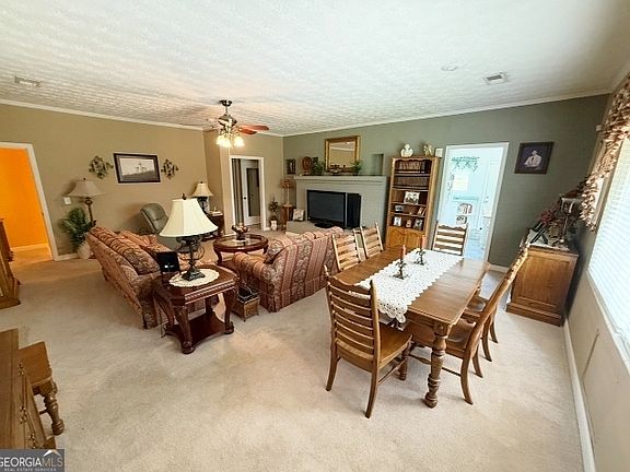 Charming two-story brick home with lots of character sits on approximately 4 acres in Soperton. Beautiful oak trees surround the property giving it some seclusion. The main floor has Great Room/Dining, Two Spacious Bedrooms and Bath. Kitchen is surrounded with windows giving a great view of yard and opens to a back deck. Bottom Floor could be a mother-n-law suite or possible rental income. Private entrance into Sitting Room, Bath, and Bedroom. Front porch, Attached Garage and Detached Garage/Workshop. Paved Drive. Many extras!