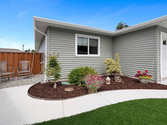 90 years remain on the head lease, expiring in 2115—exceptional value in a great adult-oriented community! Built on a foundation with a crawl space, this 2019 one-level home is immaculate and filled with upgrades. Enter through the custom mudroom with ceramic tile and wide-plank laminate floors flowing throughout. The gourmet kitchen features quartz counters, marble backsplash, skylight, stainless appliances, and peninsula. The extended great room, with huge west-facing windows, is bright, spacious, and inviting. The fully fenced, low-maintenance yard includes a covered patio with built-in heater and BBQ. Two bedrooms, a large den, and two bathrooms are tucked away, including a primary retreat with walk-in closet and 5-piece ensuite. Additional upgrades: heat pump, propane fireplace, induction range, custom vanities, epoxy garage floor, and shed. Too many to list—this home will impress the most discerning buyer!