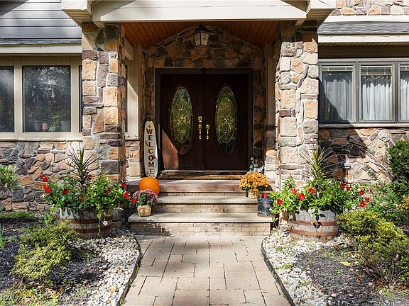 Tucked away on 2.55 acres of serene, wooded property in the heart of rustic horse country, this one-of-a-kind estate offers over 4,700 square feet of finely crafted living space with 5 bedrooms and 5 baths (4 full, 1 half). Perfect for multi-generational living or those seeking both luxury and versatility, the property features a sprawling 4,000 sq. ft. 7-car garage — ideal for car enthusiasts, RVs, or boats — complete with a half bath and the potential to add a second-floor in-law suite, Airbnb, or business complex. Inside, you’ll find timeless hardwood floors, solid wood doors, cabinetry, and trim throughout, complemented by Pella windows with built-in blinds and removable interior screens. The main floor impresses with newly remodeled bathrooms, vaulted ceilings, skylights, and four fireplaces (three electric, one wood-burning) creating warmth and character in every room. The window-wrapped dining area and four-season room provide breathtaking panoramic views of the natural surroundings, while the gourmet kitchen boasts granite countertops, undermount lighting, and abundant cabinetry. The spa-like master suite offers a true retreat with a jetted soaking tub, walk-in closets, and serene wooded views. The third floor flex space spans the length of the home and is ideal for a teen retreat, play rooms, studio or office. Additional highlights include both first- and second-floor laundry, a private in-law suite with separate entrances, a spacious media room, a wet bar, and a long sweeping driveway framed by brand-new landscaping and a two-year-old roof. Combining elegance, functionality, and privacy, this remarkable property is a rare opportunity to own a custom-built home designed for comfort, entertaining, and endless possibilities. Virtural Tour https://youtu.be/qxnTdQuglVg?si=akbf-NoIYpHKj2mE