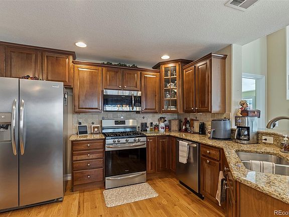 Are You ready to downsize and enjoy a low-maintenance “Lock-and-Leave” lifestyle OR are you looking for a welcoming neighborhood with endless ways to connect? *** This Community has it ALL! *** Heritage Eagle Bend, Aurora’s most sought after 45+ gated Golf Course Community, where your lifestyle and comfort come together. *** This well-maintained home is thoughtfully designed for easy living, featuring a private walkway ramp to your front porch with trex-like decking (27' x 7'), partially covered for an effortless access and year-round enjoyment. *** Inside you have inviting spaciousness, perfect for you to relax and/or entertain. *** Your Kitchen boasts Cherrywood Cabinets, Stainless Steel Frigidaire Appliances, Hardwood Floors and opens up to a Great-Room feeling in the Living and Dining Rooms which includes Plantation Shutters for timeless style and energy efficiency. *** Your Primary Bedroom and Ensuite gives you privacy you can enjoy. A second bedroom or your private office space is just down the hallway. *** Enjoy your morning coffee on the second covered trex-like Patio/deck (13' x 8') which opens to a grassy greenbelt. *** Heritage Eagle Bend offers you resort-style amenities: an award-winning clubhouse with a restaurant, fitness center, relaxing indoor and outdoor pools, golf, tennis, pickleball, and dozens of clubs and activities. *** Seller is offering you $2,700 toward capital reserves or closing costs. Seller says — don’t wait! Best to move in before winter, then you can be playing golf or pickleball this fall!! *** You are Conveniently located about 3 mile to Southlands Mall, E-470, shopping, dining, and nearby is DIA about 27 miles from home.*** You have everything you need and want within easy reach. Do not miss your opportunity to own one of Denver Metro’s most desirable home in a 45+ gated neighborhood. Schedule your private tour today!