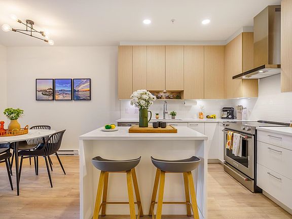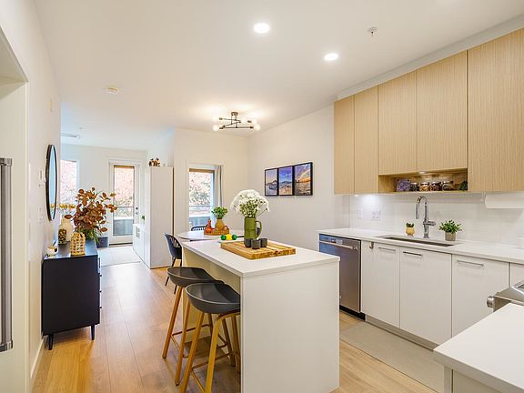 Modern open-concept layoutStylish kitchenQuartz countersExpansive windowsSe-facing balcony