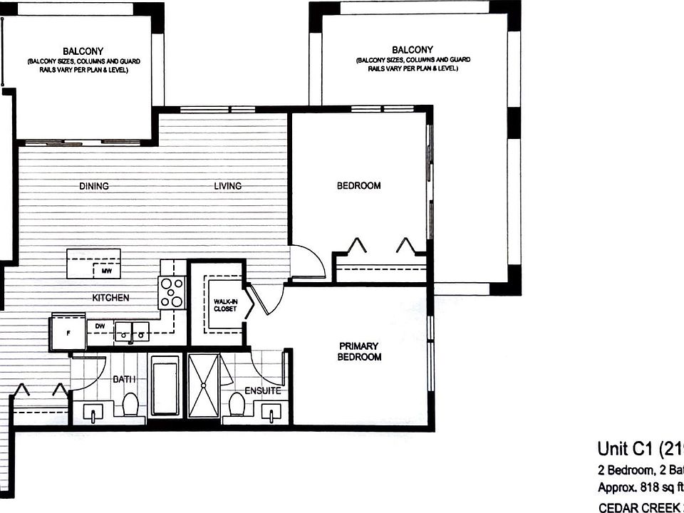 Bright and Functional 2-Bed, 2-Bath NW Corner Unit at Cedar Creek 2. Well-designed 818 sq. ft. layout plus a large 200 sq. ft. balcony offers plenty of usable space. Conveniently located near Edmonds SkyTrain Station, Highgate Shopping Centre, schools and parks for easy everyday living. Features include in-suite laundry, stainless steel appliances, built-in microwave, one parking stall and one storage locker. A comfortable, low-maintenance home in a great location don't miss out!