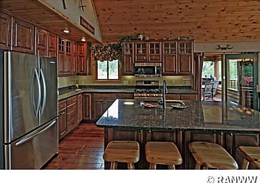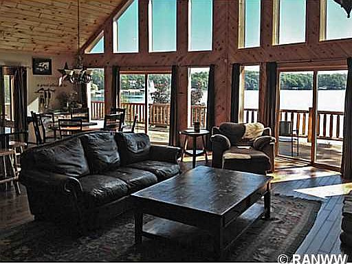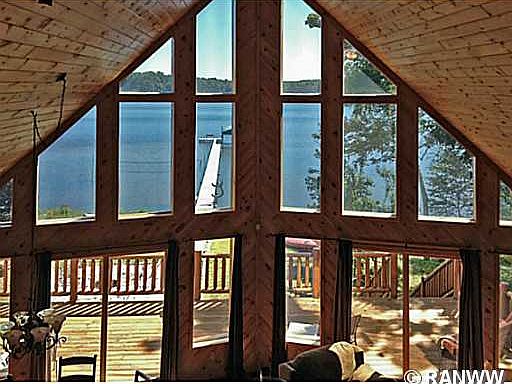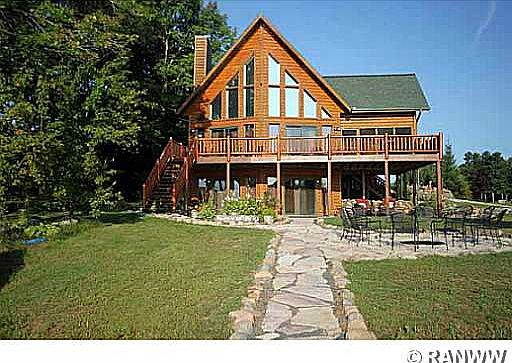 "Cranberry Lodge" Hand-hewn, log-sided home with an incredible authentic Northwoods flair. Located on Chicago Bay of the lake with 100' of level sandy frontage and Easterly views of the lake. There is spacious master suite located in the loft with sweeping lake views. Main level has wood floors throughout, granite kitchen counters and custom cabinets, cozy three season room off the dining area, vaulted ceilings and beautiful stone gas fireplace. Being sold fully furnished.