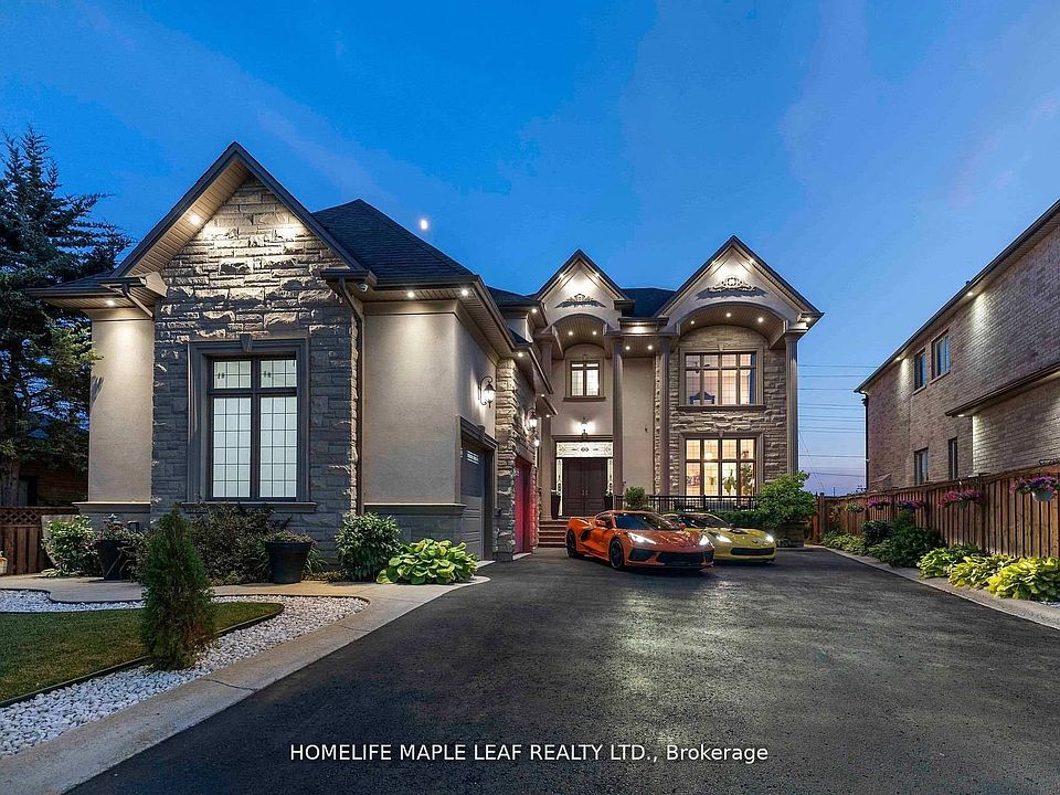 The crown jewel of the neighborhood - this is the most commanding home in the entire area. Spanning over 8,000 sq ft on a rare lot exceeding 1/4 acre, it offers 5+1 BEDROOMS, 8 BATHROOMS, and 13 CAR PARKING, including a 3-car garage with 15-FT CEILINGS. The exterior stuns with stamped concrete porch, towering front pillars, and manicured landscaping. Inside, a grand foyer with chandelier and custom plaster ceilings sets the tone. Main floor boasts 12-FT CEILINGS, 8-ft doors with wide wood trims, hand-scraped maple floors, and elegant plaster moldings throughout. Pillars frame expansive living spaces, flooded with light from oversized windows and anchored by a central dining room with dual hallways. The chefs kitchen features a large fridge and freezer, double oven, cooktop, drawer microwave, quartz counters, custom cabinetry, servery sink and a walk-in pantry. A large sliding patio door opens from the kitchen onto a 20x20 deck with a gazebo. The bright family room boasts massive windows on three sides and views of the staircase, lit from above by dual skylights that illuminate the home. Main-floor guest suite includes a walk-in closet and spa-inspired ensuite with jacuzzi, oversized shower with jets, and double vanity. Mudroom offers quartz counters, sink, laundry, and ample storage. A private office with a separate entrance offers ideal work-from-home or professional space. Upstairs offers four large bedrooms, each with walk-in closets and ensuite baths - three with jacuzzis, one with a freestanding tub. A media room with built-in entertainment unit and fireplace adds more space to relax or create. The finished basement features two staircases, two separate entrances (including a walk-out), a full modern kitchen, massive open layout, and a bedroom with ensuite-ideal for extended family or entertaining. Extras: speaker system, CCTV, central vac, alarm, sprinkler system and network-ready ethernet wiring. This is luxury at scale-unmatched in size, design and presence.
