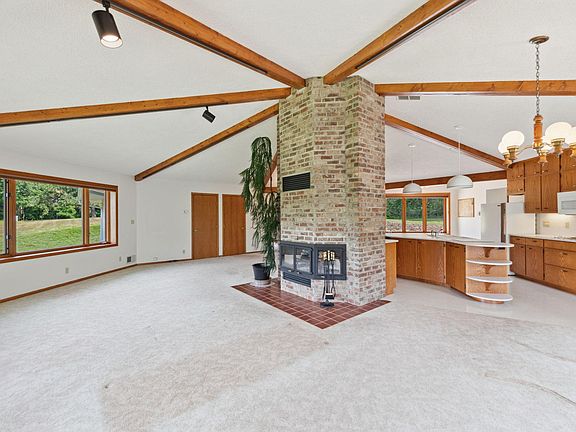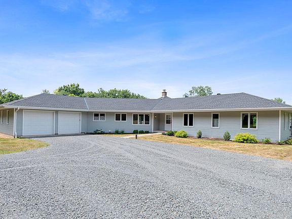 If you're seeking a haven where modern luxury meets the serenity of nature, look no further. This custom-built 2,400+ sqft one-level retreat is a perfect blend of modern luxury and natural serenity. This 3BR/3BA home is thoughtfully designed with features like a geothermal heating & cooling system and 9” thick exterior walls, ensuring comfort and energy efficiency. The open-concept living area with a traditional fireplace and vaulted ceiling provides a bright and spacious setting. The kitchen is open and well-equipped, featuring a lg center island, a bkfst nook, and lots of customized storage. The spacious owner's suite includes a large walk-in closet and an en-suite BA. For convenience, there is a main-level laundry rm. The unfinished walk-out lower level includes a 3/4 BA, immense space, and a workshop, offering the potential for further customization and additional finished space. This 4-acre property offers you privacy from the road and gives you 500+ feet of shoreline.
