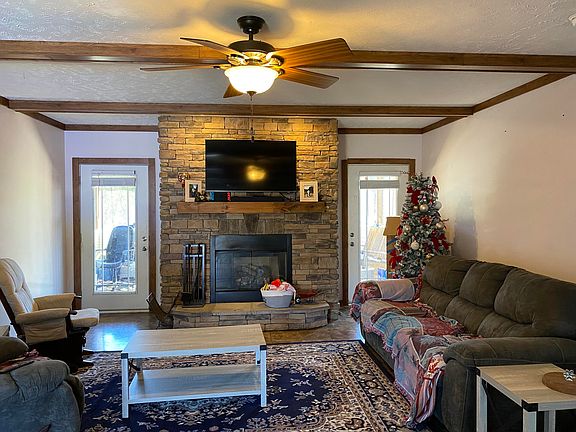 This property offers ample space inside and outside of the home. Inside the home consists of 4 bedrooms, 2 bathrooms, and a large kitchen with lots of storage. Outside the property has just over 5 acres. There are many fruit trees, beautiful flowers, and a spot ready for your garden. There are several sheds and a carport with an additional storage area. There is currently an additional single wide home on the property. This home is not included in this sale. The home can be purchased separately, or sellers will move off the property before closing. All information taken from tax records. Buyer to verify all information prior to submitting an offer. Drone photography was used on some photos.