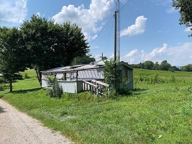 Large lot at the end of a road with mobile home in disrepair. There's an outbuilding and pretty views.