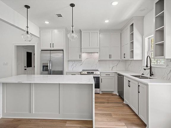 New Construction in Oak Grove - The Aspen at Nobles Boundary Cove—a home where every detail is crafted with comfort and style in mind! This 3-bedroom, 2-bath offers vaulted ceilings, open-concept kitchen with quartz countertops and matching backsplash, stainless steel appliances, and a modern microwave drawer. Enjoy luxury vinyl plank flooring throughout and a split floor plan that enhances privacy and flow. The primary suite features a walk-in closet, while the functional laundry room includes built-in storage.