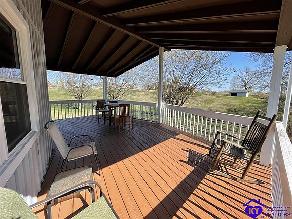 4 Possible bedrooms- either below grade no window or no closet. What a view!!! Beautiful home sitting on just over 2 acres. Home is cozy with large living room that opens to a covered deck. The basement offers a large sitting area, that also opens to a covered porch. If you are looking for entertaining, this space will be perfect! Large bathroom on main level and 4 rooms that are suitable for bedrooms. One on the main floor, a larger master style room below level, along with two others. Just 10 mins from Elizabethtown, 45 to Louisville.