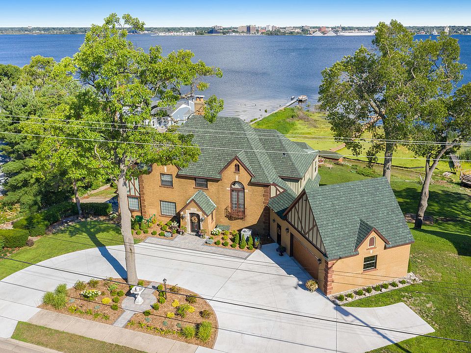 PRIME WATER-FRONTAGE ON MUSKEGON LAKE! Enjoy 140' of private frontage on this all sports lake with access to Lake Michigan. This 1928 Landmark Mansion has over 5,660 finished SF and has been beautifully modernized. Situated on 1.8 acres with breathtaking views, Tennis/Pickle ball Court, Entertaining Area and a Permanent 300' dock. Stunning Features throughout this home include the Grand Foyer with Solid Marble Flooring, Arched Entries, Original Grand Staircase, Custom Woodwork, Large Living Room with Gas Log Fireplace and Hardwood Floors, that lead to a Music Room and a Sunroom/Playroom. Large Formal Dining adjoins the Totally Renovated Kitchen with Dining area with slider & a Stairs to the Large Deck. Also on the Main Floor is an Office with amazing views and Main Floor Laundry as well