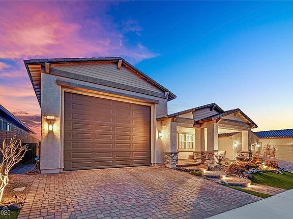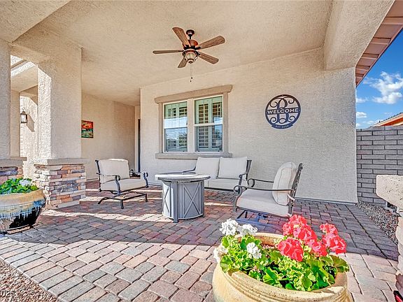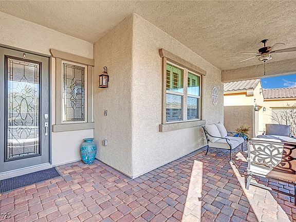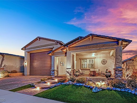 Welcome to this thoughtfully designed one-story home, located in the vibrant 55+, guard-gated community of Heritage at Cadence, where unparalleled amenities meet modern living. Featuring 2 beds, 3 baths, a versatile den, and an RV parking-capable garage. The open-concept living area is a true centerpiece, complete with a custom wet bar & surround sound—ideal for entertaining guests or enjoying a relaxing evening. The luxurious primary suite boasts a spa-like en-suite bathroom. The versatile den provides endless opportunities to create a home office, craft room, or cozy reading nook. Adventure enthusiasts will appreciate the oversized garage with RV parking capabilities and endless storage space! The solar panels deliver significant savings on utility costs. Beautiful covered patio with incredible strip views! Heritage at Cadence offers a clubhouse, community pool, fitness center, walking trails, and organized social events—perfect for staying active and connected with neighbors.