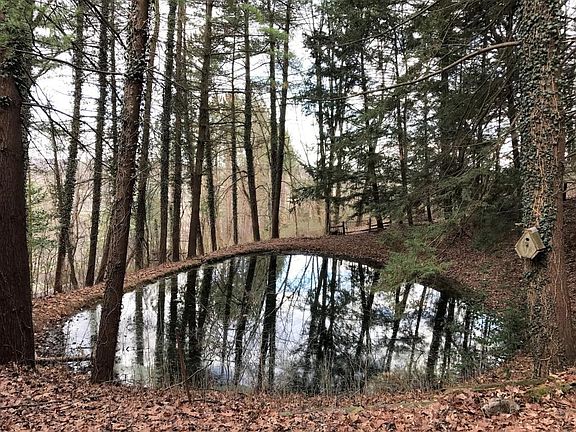 Best of country living -in town. Property is two lots- one with a pond and detached garage and apartment in located the city. The main house with 2-car attached garage is situated in the county. Both have city water. Situated overlooking South Logan on over 2 acres, this brick ranch with 2040 square feet offers 3 bedrooms, 2.5 baths, gas log fireplace, 2 car attached garage, and blacktop driveway. There is also a 1 car detached garage with a huge attic, first floor studio apartment with kitchenette, new shower, and balcony overlooking the pond and woods. Heating and cooling system (White’s) installed recently. Two chair height toilets and new roof installed in 2020.