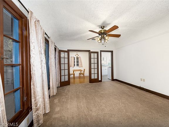 The charming front door leads to a welcoming private patio, perfect for relaxing. Inside, the living room boasts tray ceilings, an elegant fireplace, and a large picture window. The two unique built-in bookcase cabinets on either side of the picture window provide both functionality and a touch of historic charm. The dining room features elegant cove ceilings and large windows overlooking the courtyard, offering a picturesque setting for meals and gatherings. It's right next to a cozy breakfast nook, next to the kitchen. The kitchen has been thoughtfully updated with new counters, and flooring, while preserving the original tile backsplash, blending modern convenience with classic style. The three good-sized bedrooms provide ample space for comfort and relaxation. Outside, the large yard is a gardener's paradise, complete with fruit trees. The long driveway leads to a detached garage in the backyard, offering room for multiple cars. Make it your home today.