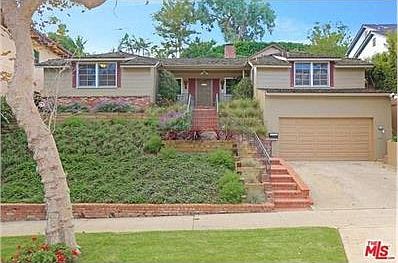 This is a fantastic opportunity to own a classic 1950's home in the coveted Little Holmby neighborhood. Set serenely above the street, the house has a living/dining great room with soaring peaked wood ceiling and warm brick fireplace opening to a galley kitchen with cozy breakfast area and to a stylish family room with Terrazzo floors, sliding glass doors and a spiral staircase leading to an upstairs club room with exposed beam ceiling and bar perfect for private entertaining or office. There are three family bedrooms with two on one side of the house including master bedroom with built-ins and direct access to full bath, and a third wood paneled bedroom with attached ~ bath on the other. The protected yard includes sparkling pool and lovely patio area. In addition, the home has newer two-zone HVAC with special filters, original hardwood floors, large two car garage, and is in the Warner Avenue school district. Hurry and bring your contractor and designer to make this house your own.