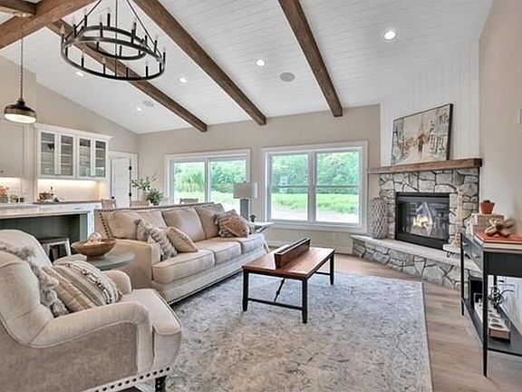Welcome to the Preserve at Comfort Lake and your gorgeous new home! This one level property checks all the boxes! Sequestered off the western shores of Comfort Lake sits this tranquil 19 lot acreage development featuring a perfect blend of scenic natural open space and beautiful wooded spaces. The thoughtfully crafted Farm model home, on almost two acres, shows pride and craftsmanship by Judge Homes at every turn, from the heavy reclaimed beam accents to the nickel spaced shiplap vaulted ceiling offering a warm, comfortable open concept floor plan. You'll enjoy the gourmet kitchen with custom cabinets and built-in features, ample quartz counters, stainless steel appliances, and a large center island with ceramic farm sink. A spacious pantry tucked behind a gorgeous barn door, is within reach as you prepare your favorite meals. You will love the large primary bedroom and bright en-suite bath-with separate shower, custom tile, soaking tub and crisp clean accents that sparkle. There are two other spacious bedrooms with a full and half bath all conveniently located on the main level. This is one level living at its finest! The entire basement is ready to finish to your specifications and you can add another bedroom and office if desired. NEED MORE SPACE? Ask about finishing the basement before closing! The Preserve at Comfort Lake allows outbuildings and No ASSOCIATION FEES! Lake access living without the high lake front taxes. 30 min North of the Twin Cities. Other lots available to build your FULLY CUSTOM HOME. Ranging from 1-5 acres in size and different scenery options, we are sure to have a lot perfect for YOU! Most of the furniture is available for purchase as well!