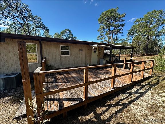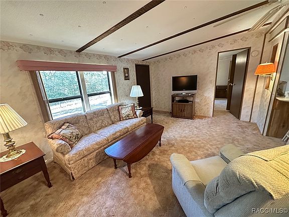 Check out this affordable, furnished mobile home on a two acre corner lot (MOL). This well-cared-for home is in good condition and offers a solid structure. While it could use some cosmetic updates, it has plenty of potential. The split floor plan includes a galley kitchen with bar seating, stone countertops and backsplash. The living room and dining room are combined, providing a roomy space for gatherings. There are two bedrooms plus a bonus room that could work well as an office or kids' room. The property features a fenced yard with two entry points and lightly cleared land, giving you room for outdoor activities. You'll find a large attached carport, storage area, and two sheds for additional storage. The home has a metal room and is on a well water system with a water treatment system, ensuring you have clean water. Enjoy the country setting with no restrictions, so you can bring your animals or recreational vehicles. In close proximity to Crystal River, you'll have easy access to fishing, boating, restaurants, and nightlife. Experience swimming with the manatees in the beautiful Crystal River and everything this area has to offer! This mobile home is a great opportunity for anyone looking for a peaceful lifestyle with room to grow. Come quick - priced to sell!