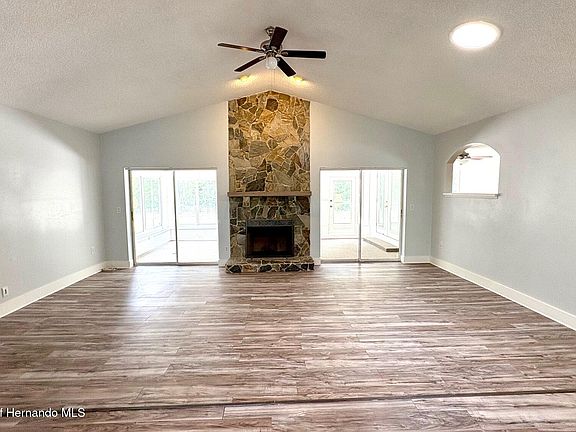 JUST REDUCED AGAIN! A Must see to appreciate BEFORE ITS GONE AT THIS PRICE POINT. UPDATED home in Weeki Wachee FL, where comfort meets elegance in this spacious 3-bedroom, 2-bath home. With 2,020 square feet of living space this property is designed for both relaxation and entertainment. Upon entering you are greeted by a bright and inviting layout that highlights the home's FRESH PAINT and modern UPDATES throughout. The expansive family room boasts HIGH CEILINGS and features a charming stone fireplace providing a cozy focal point for family gatherings. Large windows allow abundant natural light to flood the space enhancing the overall ambiance. The kitchen is a true highlight of this home featuring sleek GRANITE countertops and ample cabinet space ideal for culinary endeavors and family meals. Adjacent to the kitchen the FLEX ROOM serves as a versatile office space accommodating your work-from-home needs or could easily be transformed into playroom or hobby area. Stepping outside you'll find a LARGE SUNROOM w/ updated paint & flooring adds to the home's appeal offering the perfect space for morning coffee or evening relaxation while enjoying the serene private outdoor views. Additional features include a convenient inside laundry room, a modern SOLAR water heater 2016, and a NEW A/C system 2025 to ensure year-round comfort, Roof 2015, & some newer windows 2017. Located within The Heather golfing community this home benefits from LOW HOA fees of 24 mo. providing access to some local amenities. Come explore what the Nature Coast offers such as Springs, Parks, Kayaking, Boating, nearby amenities & more. This property presents an exceptional opportunity for those seeking a move-in ready home in a desirable area. Schedule your viewing today to experience all that this home has to offer!