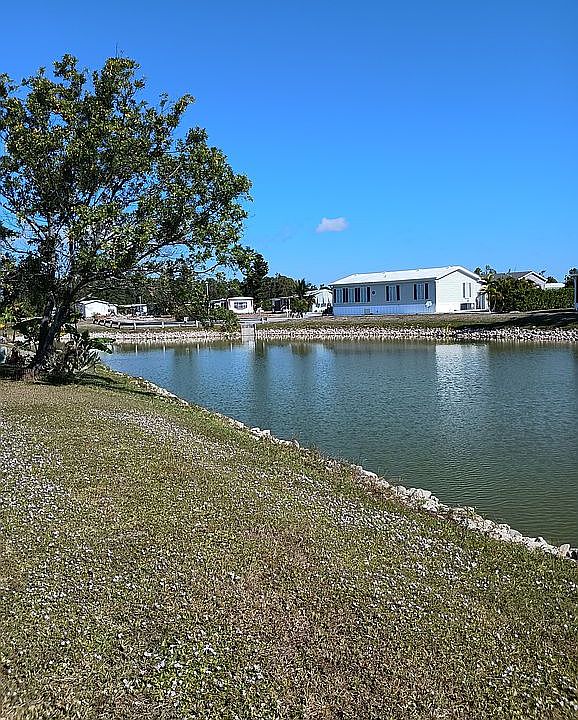 seconds from Englewood border. 2 bed 2 bath manufactured home with beautiful water view off back porch. Updated kitchen and baths. New water heater just installed, New roof 2023. New Xfinity internet line recently installed and new 65 inch Samsung TV. *YOU OWN THE LAND*. No lot rent. No age restrictions. Low HOA fee of only $140 / month comes with many amenities including: Lawn care, Private Road maintenance, Pools, Tennis, Exercise room and Boat Docks available. Beautifully maintained community. Private and safe. Perfect vacation spot or full-time residence.