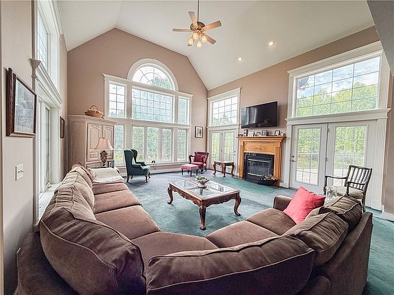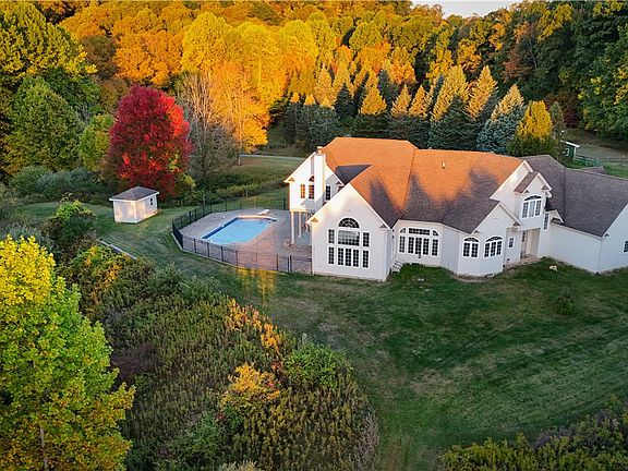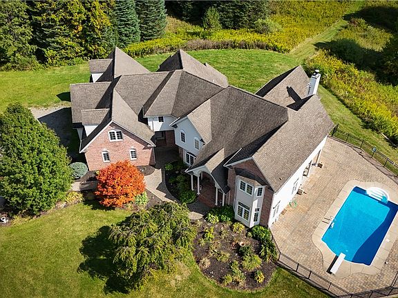 Hidden at the distal end of a gravel drive in the rolling hills of Victor, quiet replaces commotion and light fills every window of this sun-warmed home. Perched on over nine acres, the property balances seclusion and convenience in one of the region's most desirable areas. Close enough to downtown Victor for an easy errand, yet far enough that mornings begin with birdsong instead of traffic. At over 4,200sq ft the three bedroom and 2.5 bath home itself is large and filled with light. Expansive banks of windows draw the outdoors in, casting daylight across hardwood floors and open spaces that invite gathering. The eat-in kitchen anchors the heart of the house with a sprawling island built for meal prep, laughter, and conversation that lasts well past dinner. The layout flows easily, connecting defined living areas with pockets of privacy that make the space feel both open and personal at the same time. Upstairs, the primary suite spans the width of the home - an airy living space with a massive bath that includes a jacuzzi tub, stand-up shower, and room to exhale. Storage abounds with both an unfinished attic and basement ready for projects, hobbies, or expansion. Step outside and the property continues to unfold. A mix of woods and open ground surround the home, while its position above the surrounding grade captures sunrise views that spill warmth across the land. An inground pool waits for summer afternoons filled with laughter, and a horse barn - with two stalls and space for a third - sits alongside a two-acre pasture enclosed with well-maintained high-tensile fencing. Whether you're keeping horses, cultivating gardens, or simply watching light move through the day, the setting invites a slower pace and a deeper breath. Moments from Boughton Park and the Ganondagan State Historic Site, this property offers rare privacy within reach of everything Victor is known for - strong schools, small-town charm, and the quiet satisfaction of country living without leaving it all behind. Contact us today to schedule a private showing and learn what this expansive estate has to offer.