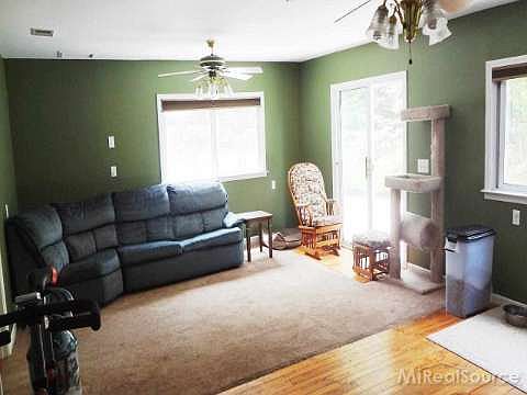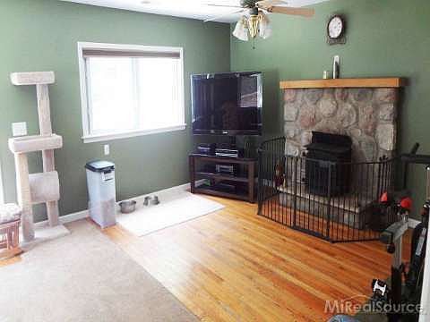 Paved Road and Natural Gas! Enjoy a slice of country in this very well maintained home on 2 treed acres. Features include large bedrooms, wood stove, awesome log cabin wood bin shed in back. Barn has 30 amp service and loft for storage. Property fenced. All appliances stay!