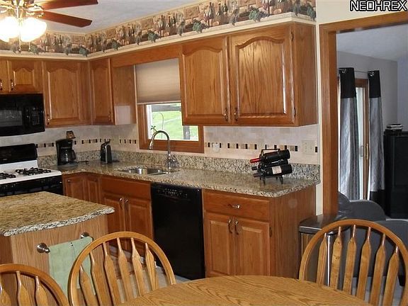 Clean and Beautiful 4 bedroom, 2 1/2 bath colonial set in a spectacular backyard park/country like setting with a wooded area! One owner home! Updated eat-in kitchen with Granite countertops with tile backsplash and center island! Nice size dining room with trayed ceiling and chair rail! Family room with cathedral ceiling and brick gas log fireplace with doors that lead to deck and patio! Arched windows in living and family rooms! Finished basement with glass block windows! Extra wide staircase from foyer to 2nd floor. 4 Bedrooms all nice sizes with walk-in closet in master and 2nd bedroom. Garage has service door. Plus additional parking pad. All appliances stay! Home warranty included. New roof (2011), newer hot water tank (2008), newer carpeting. Ease access to I-480, I-71, I-77 and turnpike! Convenient to shopping and restaurants. School system rated excellent. This is a truly wonderful home combining city (front) and country (back) life in one!
