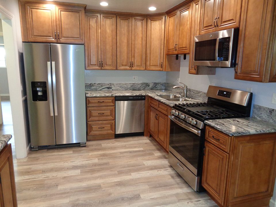 Remodeled with new appliances, cabinets, vanities, Granite countertops, windows, doors, flooring, can lights, faucets, mirrored closet doors.