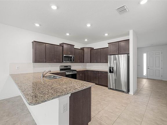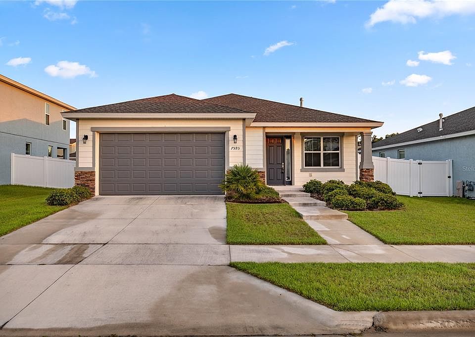 Move-In Ready Currant Model in Calesa Township! This beautiful 3-bedroom, 2-bathroom home offers a spacious split floor plan with a versatile bonus room and abundant kitchen. Featuring tile floors throughout the main living areas, soaring 9’4” ceilings, shaker-style cabinetry, and quartz countertops, every detail has been designed with style and function in mind. Enjoy both a welcoming front porch and a relaxing back lanai overlooking the fully fenced backyard with a 6’ vinyl privacy fence—perfect for outdoor living. Living in Calesa Township means more than just a home—it’s a lifestyle. The community features miles of walking trails, an on-site K–8 charter school, the FAST aquatic and training facility, and exciting upcoming amenities including The NEST entertainment hub and The Oasis amenity center. Don’t miss your chance to own this move-in ready home in one of Ocala’s most desirable master-planned communities!