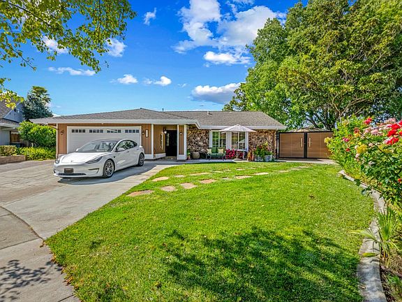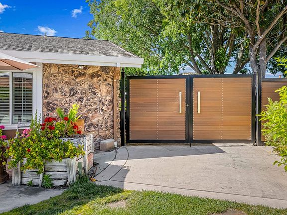 Car enthusiasts and entertainers paradise! Peaceful single story home near walking trails and foothill views. You will find hardwood floors, arched entryways, and crown molding. Gleaming quartzite countertops wrap around the updated kitchen. An oversized laundry room with white cabinets keeps all the practical aspects of running a home confined to one beautiful, soothing space. The bathrooms features beautifully varied stonework, a deep soaking tub, walk in shower and lots of natural light. The primary suite features high ceilings and French doors opening out onto the covered patio -- perfect for enjoying summer evening sunsets together. A one bedroom pool house resides just mere feet from a brilliantly clear swimming pool complete with automatic