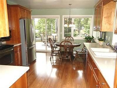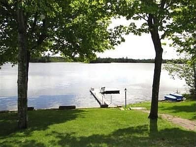 Quiet and peaceful home with 235 ft of perfect lake frontage! Great swimming and wonderful views from the property. Fully updated with gorgeous Cherry cabinets and Stainless steel appliances! Cozy family room in lower level with propane fireplace and walk-out to the patio. Spacious bedrooms with lake views from just about every room, beautiful sauna, huge laundry/hobby room, large wrap around deck, and new propane boiler less than a year old. Metal roof, maintenance free siding, detached 2+ car garage with new roof, and extra storage shed! Perfect setting for you to enjoy lake living!