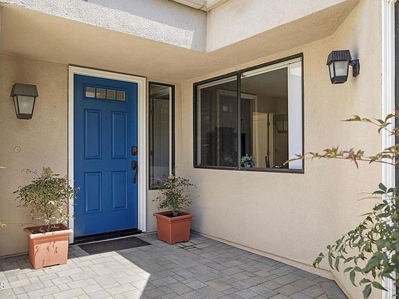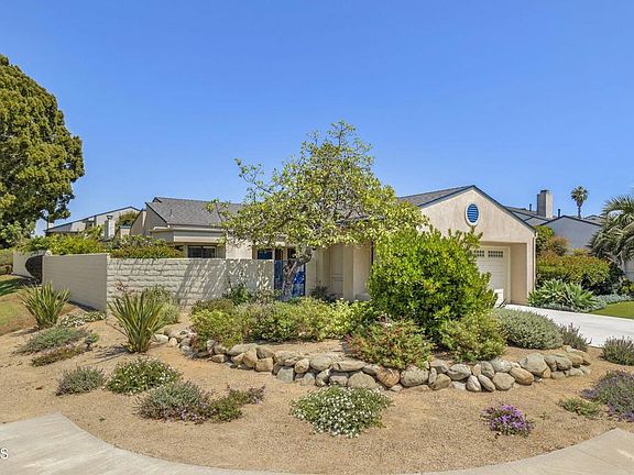 Stonehedge Beauty: Step inside the gate of this single story, corner lot and you'll enter into a professionally designed garden which greets you with the wafting scents of jasmine. Follow the pavers past, apple, orange, lemon, apricot, tangerine, and nectarine trees and roses.....Then, circle back to the front door and enter this professionally updated 2 bedroom, 2 bathroom house with dine-in breakfast kitchen. The kitchen counter is a veined white quartz with water fall edge peninsula and updated cabinets. Breakfast kitchen has slider to side yard and kitchen sink looks out to garden.The first bedroom suite is at entry with en suite glass enclosed shower/soaking tub. Custom double vanity sinks with custom cabinetry below sink functions as linen storage or dresser.The living room and formal dining area allow for intimate gatherings or just catching the latest Netflix show. In the far corner is the fireplace. There are two sliders to the outside which allow for seamless traffic flow and cooling breezes.Enter the primary en suite with high ceilings and slider to garden. The bathroom features a glass enclosed walk-in shower and double vanity. The house has a two car garage with work bench and storage cabinets.Don't miss this highly upgraded Stonehedge beatuy! Other features include: newer air conditioning, tankless water heater, upgraded lighting fixtures, recessed LED lighting, newer roof, newer sewer lateral, dual pane windows, wood laminate and tile flooring, drip irrigation and limestone pavers outside.This house is across from the HOA community park: playground, bocce and volleyball court. Across Kimball Road is the 96 acre Ventura Aquatic Center with two pools, walking/jogging and biking path around the park.