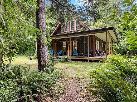 Tucked away in the woods, this charming 2-bedroom, 1.5 bath A-frame cabin offers the perfect retreat from the everyday. With soaring ceilings, a wall of windows bringing in forest views, and the cozy glow of a wood stove, it’s equal parts peaceful and picturesque. Whether you’re looking for a weekend escape, a short-term rental, or a quiet place to call home, this 5-acre property gives you room to roam, explore, and unwind. A 3 stall Pole Building and multiple outbuildings & ton of garden space. The Original cabin still stands and with some TLC could be the perfect rental or ADU. New roof in 2017 & New drain field in 2020. Partially furnished! You wont want to miss it!