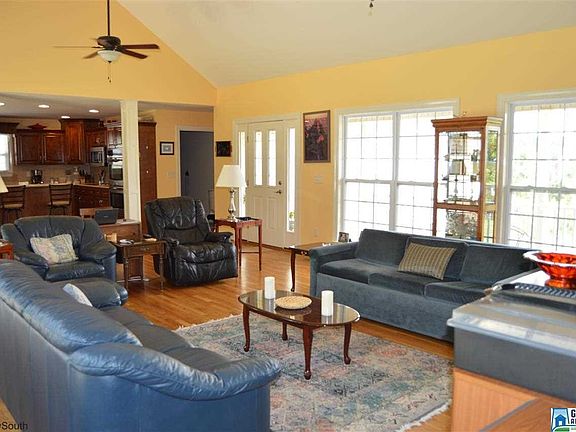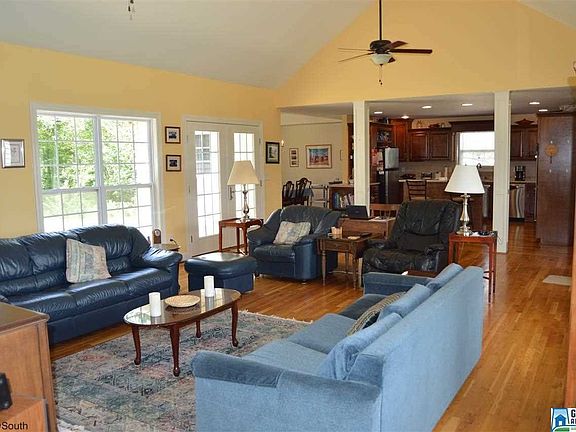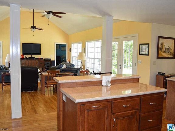 Nearly new custom built home privately situated on nice five-acre parcel. Awesome open floor plan with great room that is surrounded by windows bringing in an abundance of natural light. Also features a cathedral ceiling. In the kitchen youll find custom built cabinets in a rich warm stain. Other highlights are stainless appliances, a double oven, and a center island with breakfast bar. Decorative columns separate the great room and the kitchen, and a formal dining room is also off the kitchen. Down the hallway is a large pantry, a large laundry room, and a beautiful master suite. On the opposite side of the home are two guest rooms and a full bath. Tray ceilings highlight both the master bedroom and the formal dining room, and there are hardwoods and tile throughout. For your outdoor enjoyment, theres a porch across the front of the home and a large patio out back. Fruit trees are planted over the property, along with lots of flowering trees and shrubs. Carport & garage remain.