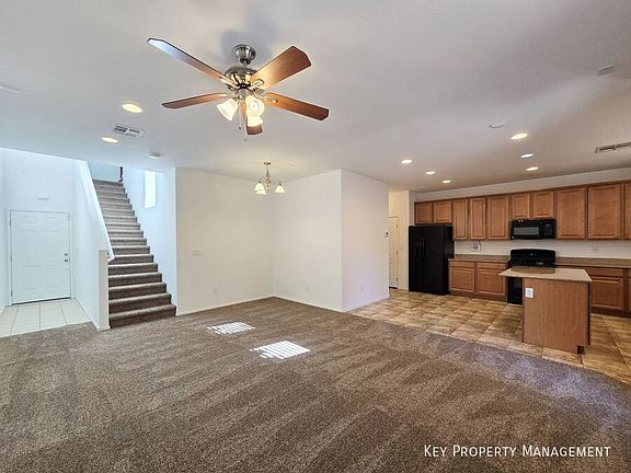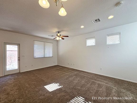3 Bedroom home in the sought-after Mountain's Edge community! This spacious two-story home blends style, comfort, and functionality with an open-concept living and dining area, granite countertops, a large island kitchen, and all appliances included. Upstairs, enjoy the convenience of a laundry room, ceiling fans in every bedroom, and a versatile loft with a built-in deskperfect for a home office or study space. The primary suite offers a spa-like retreat with dual sinks, a separate shower, and a soaking tub.