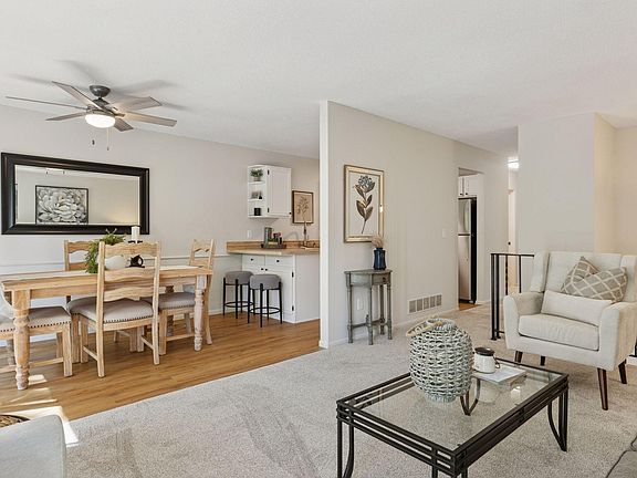 This beautifully updated and meticulously maintained townhome is truly move-in ready. Ideally located on a quiet cul-de-sac, you’ll enjoy both privacy and convenience with easy access to neighborhood trails and a nearby city park. Step inside to an inviting open floor plan featuring brand-new carpet and easy-care luxury vinyl flooring. The kitchen shines with fresh updates, including new countertops, appliances, and professionally painted cabinetry - perfect for everyday living and entertaining. The upper level offers two bedrooms, including a spacious primary suite complete with a walk-in closet and pass thorough bathroom access. The lower level walk-out expands your living options with a large family room - ideal as a home office, playroom, exercise space, or even a future bedroom. Fresh paint throughout creates a light, modern feel. Enjoy the outdoors on your extended and updated deck with newer maintenance free decking plus a covered patio - perfect for relaxing or hosting gatherings. Bathrooms have been stylishly refreshed with modern finishes, completing this home’s turnkey appeal. All that is left to do is unpack and start enjoying your new home!